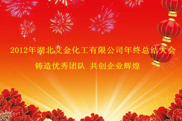湖北艾金化工有限公司于2013年12月27號召開了2013年度年終總結(jié)大會。會上,經(jīng)理全面客觀的總結(jié)了公司一年來取得的各項成績,對2013年的成績予以肯定,并結(jié)合年度計劃總目標,對公司工作做了整體的規(guī)劃。全體員工對2014充滿了無限的希望,決定在2014年奮發(fā)向上,更進一步。